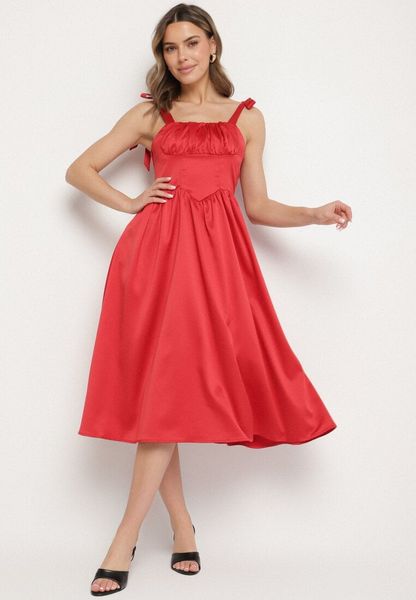 Czerwona Rozkloszowana Sukienka Vices na Wiązanych Ramiączkach Natavine