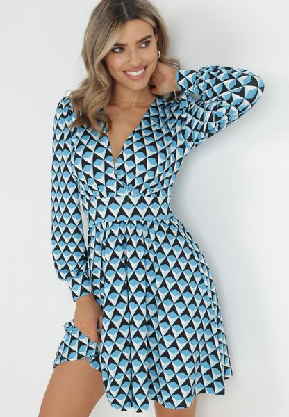 Niebieska Sukienka Mini z Kopertowym Dekoltem Kiyani