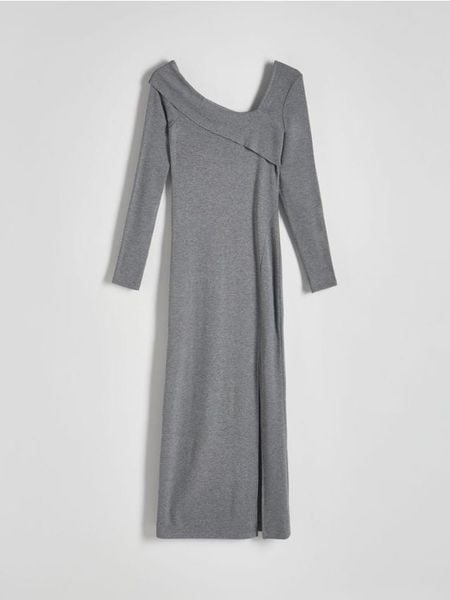 Dzianinowa sukienka z asymetrycznym dekoltem – ciemnoszary