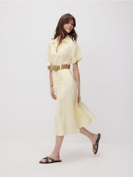 Sukienka midi z dodatkiem lnu – jasnożółty