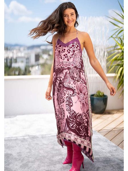 – czysta wiskoza- ramiączka: sportowy krój pleców- dolny brzeg: asymetryczny- detale: koronka- krój: litera A- wzór: na całości