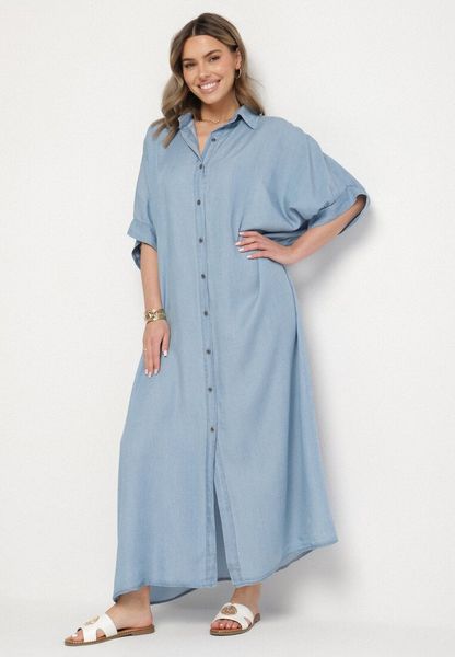 Jasnoniebieska Wiskozowa Sukienka Koszulowa o Pudełkowym Kroju Milessea