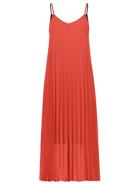 – ramiączka: wąskie- dekolt: V- detale: plisy- krój: rozkloszowany- look: jednokolorowy