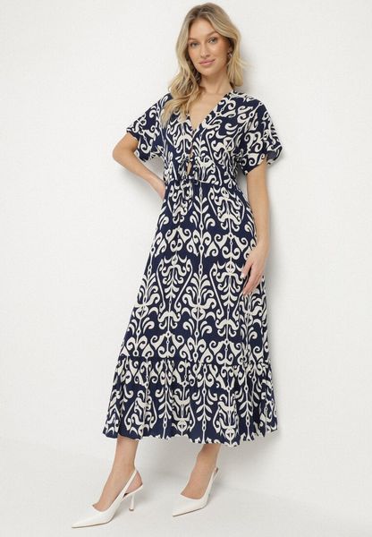 Niebieska Sukienka z Wiskozy w Abstrakcyjny Wzór Faledira