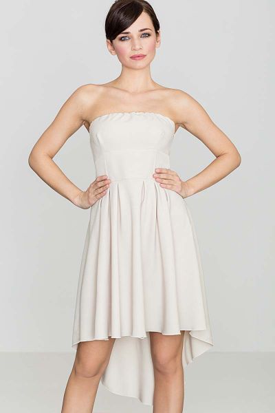 Modna Sukienka z Odkrytymi Ramionami Wydłuzonym Tyłem Beżowa