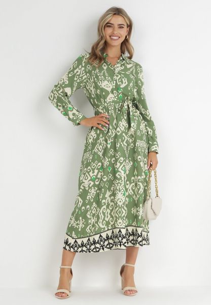 Zielona Sukienka Koszulowa i Wiązana w Pasie Iuliarsus