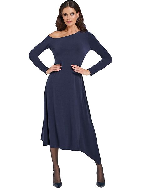 – dekolt: łódka- krój: litera A- dolny brzeg: asymetryczny- look: jednokolorowy