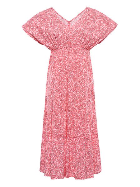 – czysta wiskoza- dekolt: V- krój: taliowany- wzór: kwiatowy