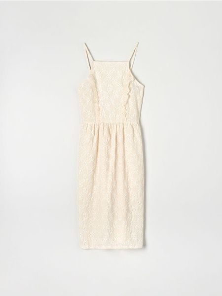 Ażurowa sukienka midi – kremowy