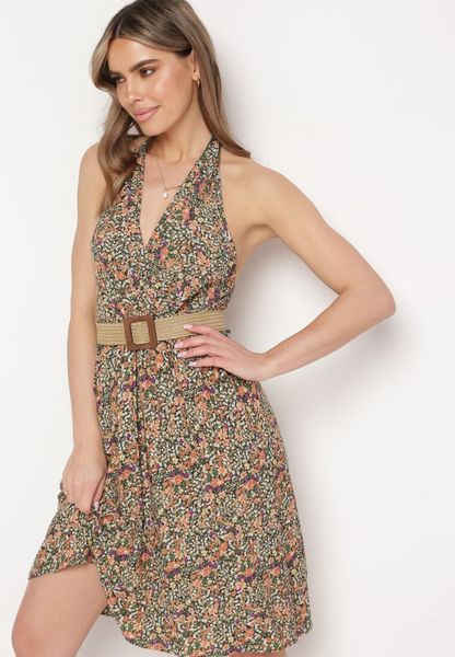 Zielono-Fioletowa Wiskozowa Sukienka Wiązana na Plecach i Szyi z Odcięciem pod Biustem Peridia