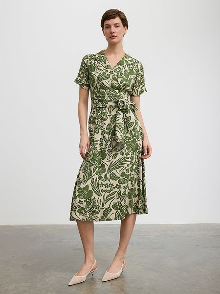 – czysta wiskoza- kołnierzyk: z klapami- dekolt: V- w talii wiązanie: tak- krój: litera A- wzór: kwiatowyUwaga: Przy wyborze właściwego wariantu zaleca się korzystanie z tabeli rozmiarów.