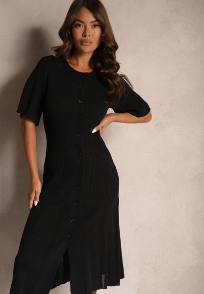 Czarna Trapezowa Sukienka z Dzianiny Zapinana na Guziki Zetirae