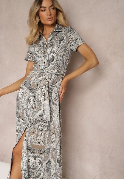 Czarno-Biała Rozkloszowana Sukienka Maxi na Guziki z Abstrakcyjnym Wzorem Uvellia