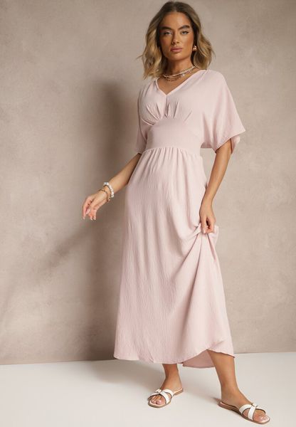 Jasnoróżowa Sukienka o Rozkloszowanym Kroju z Gumką w Talii Iffine