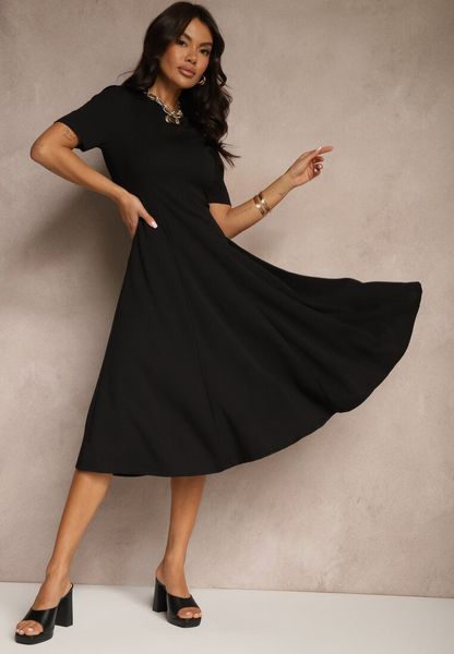 Czarna Sukienka Rozkloszowana o Taliowanym Fasonie Telaswena