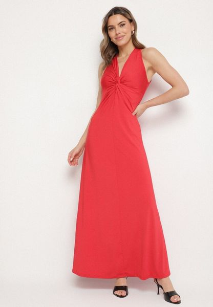 Czerwona Marszczona Sukienka z Wiskozą o Rozkloszowanym Fasonie Bez Rękawów Folonea