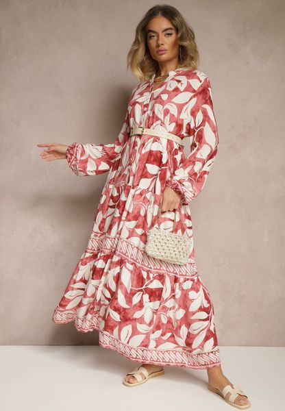 Czerwona Wiskozowa Sukienka Koszulowa w Liście Lioelene