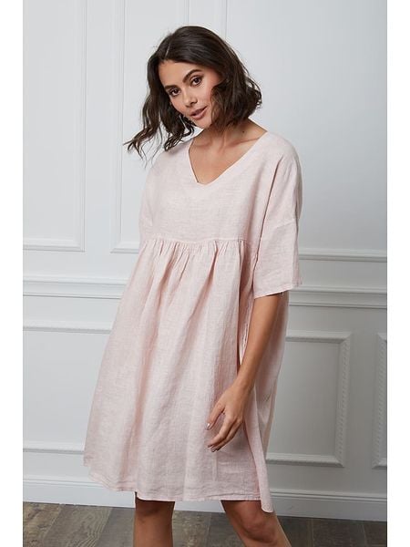 – czysty len- dekolt: V- krój rękawów: rozszerzany do dołu- krój: oversized- look: jednokolorowy