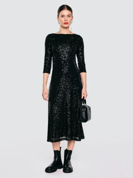 Sukienka damska midi cekinowa z rękawem 3/4 czarna Alex 906