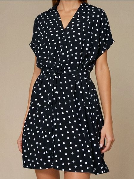Sinsay – Wiskozowa sukienka mini w kropki – czarny –