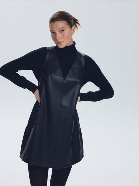 Sukienka o kroju litery A, wykonana z imitacji skóry.