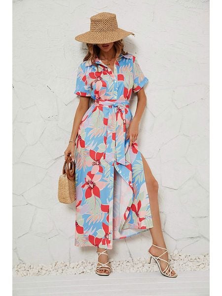 – kołnierz: kent- zapięcie: listwa guzikowa- zakończenie rękawa: podwijane- zdejmowany pasek: tkanina- krój: prosty- wzór: kwiatowy