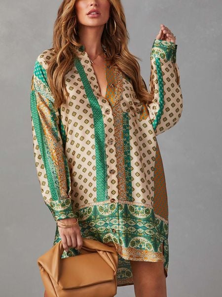 – kołnierz: kent- zapięcie: listwa guzikowa- zakończenie rękawów: guzik- kieszenie: na piersi- dolny brzeg: zaokrąglony- krój: luźny- wzór: mixUwaga: Przesyłka nie zawiera paska.