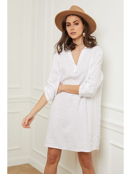 – czysty len- kołnierz: kent- dekolt: V- zakończenie rękawów: patka i guzik- dolny brzeg: zaokrąglony- krój: luźny- look: jednokolorowy