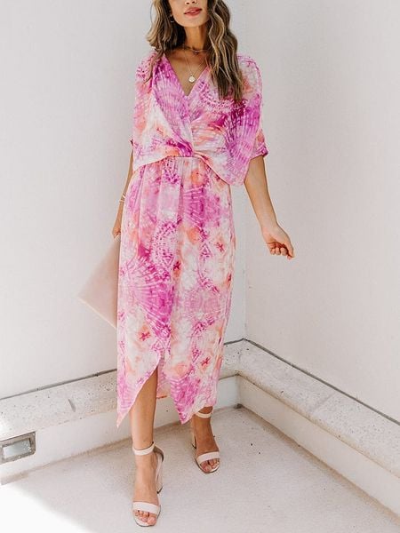– dekolt: V- krój rękawów: nietoperz- długość rękawa: 3/4- talia: elastyczna- dolny brzeg: z rozcięciem- krój: prosty- wzór: na całościUwaga: Przy wyborze właściwego wariantu zaleca się korzystanie z tabeli rozmiarów.