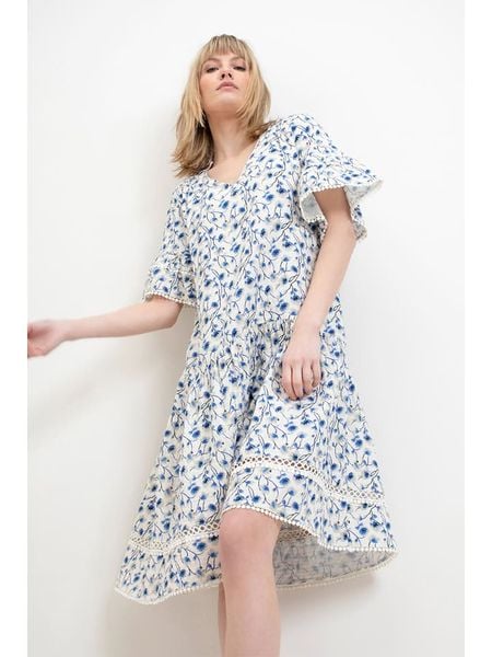– czysta bawełna- dekolt: V- detale: wycięcia- krój: rozkloszowany- wzór: na całości