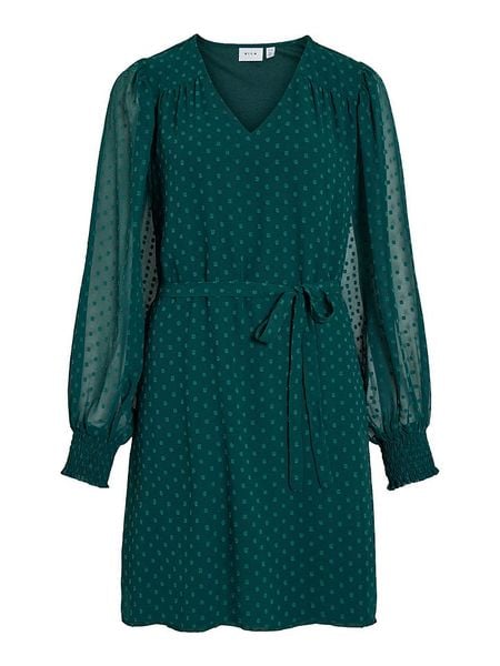 – z dodatkiem poliestru pochodzącego z recyklingu- dekolt: V- krój rękawów: bufiasty- zakończenie rękawów: marszczenie- zdejmowany pasek: tkanina- krój: prosty- look: jednokolorowy