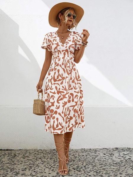– dekolt: V- krój rękawów: motylek- krój: litera A- wzór: na całości