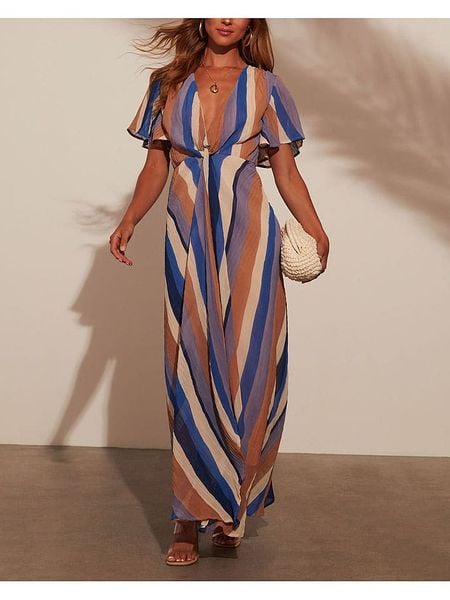 – czysta wiskoza- dekolt: V- krój rękawów: motylek- krój: luźny- wzór: paskiUwaga: Przy wyborze właściwego wariantu zaleca się korzystanie z tabeli rozmiarów.