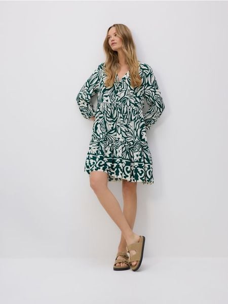 Sukienka o lekko rozkloszowanym kroju, wykonana z wiskozy.
