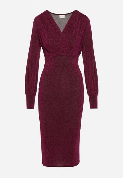 Jasnofioletowa Dopasowana Sukienka z Kopertowym Dekoltem i Bufiastymi Rękawami Ulonissa