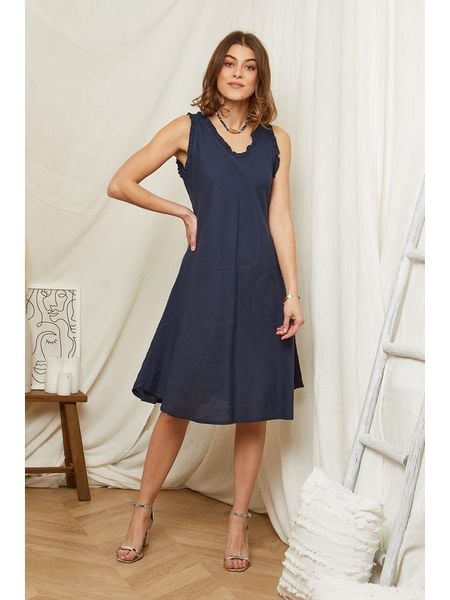 Rodier Lin Lniana sukienka w kolorze granatowym rozmiar: S/M