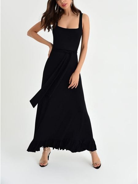 – ramiączka: szerokie- dekolt: karo- zapięcie: suwak na plecach- w talii wiązanie: tak- krój: litera A- look: jednokolorowyUwaga: Przy wyborze właściwego wariantu zaleca się korzystanie z tabeli rozmiarów.