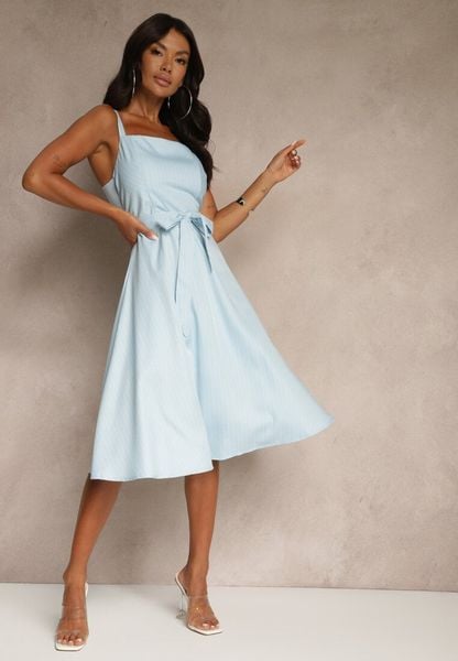 Niebieska Rozkloszowana Sukienka z Wiskozą w Paski Dolavessa