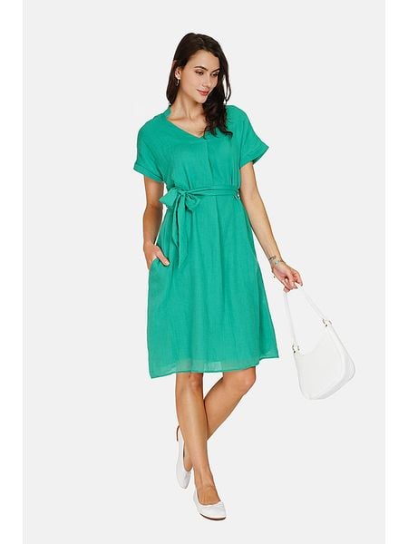 – czysty len- dekolt: V- zakończenie rękawa: podwijane- szlufki na pasek: tak- zdejmowany pasek: tkanina- kieszenie: wpuszczane- krój: litera A- look: jednokolorowyWskazówka: Na metkach odzieży tej marki znajdują się rozmiary francuskie. Rozmiarówka została przez nas przeliczona. Podane do wyboru warianty rozmiarów odpowiadają standardowym europejskim rozmiarom konfekcji. Prosimy zapoznać się z zamieszczonym objaśnieniem rozmiarów.