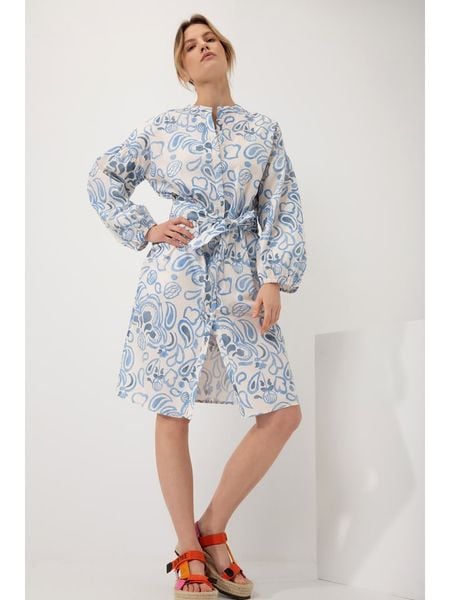 – czysta bawełna- dekolt: okrągły- zapięcie: listwa guzikowa- zdejmowany pasek: tkanina- zakończenie rękawów: elastyczne- rękaw: bufiasty- krój: prosty- wzór: na całości