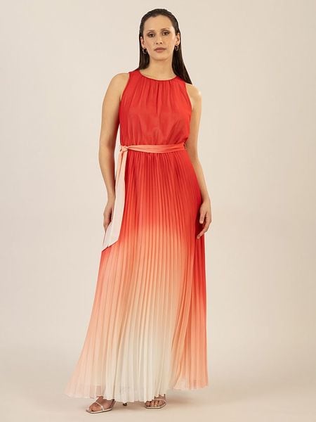 – ramiączka: szerokie- dekolt: okrągły- zapięcie: suwak na plecach- zdejmowany pasek: tkanina- krój: litera A- wzór: przejście kolorów- look: plisy