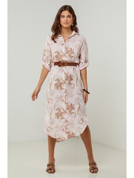 Lin Passion Lniana sukienka w kolorze kremowo-jasnoróżowym rozmiar: 34/36