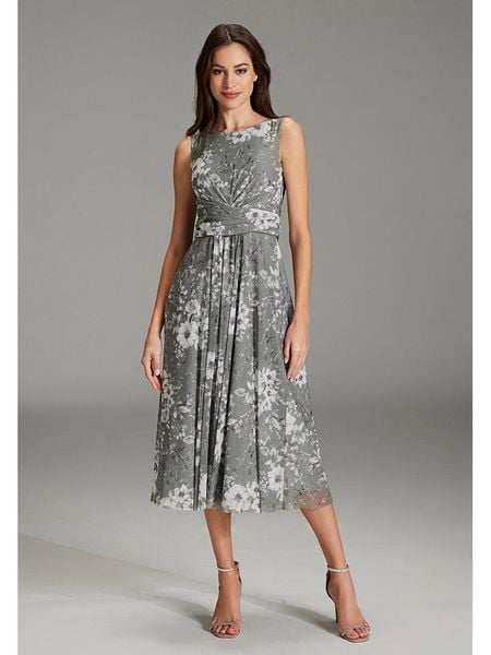 Szara trapezowa sukienka Ella w kwiaty PLUS SIZE XXL OVERSIZE WIOSNA