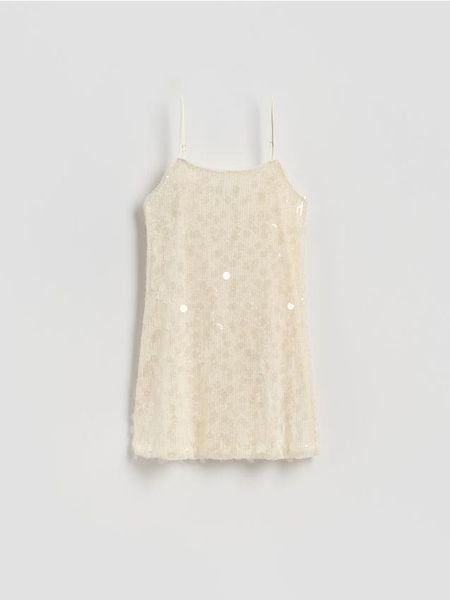 Cekinowa sukienka mini – kremowy