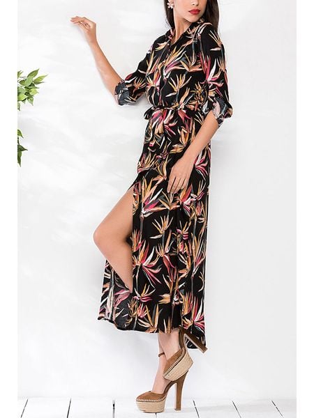 – czysta wiskoza- kołnierz: kent- zapięcie: skrócona listwa guzikowa- zakończenie rękawów: patka i guzik- zdejmowany pasek: tkanina- krój: prosty- wzór: na całości