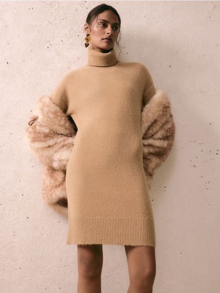 Sukienka o swobodnym kroju, wykonana z dzianiny z wełną i dodatkiem alpaki.