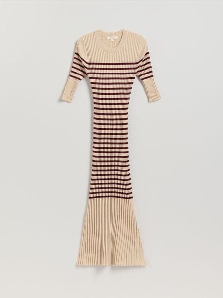 Sukienka o dopasowanym kroju, wykonana z dzianiny z wiskozą.