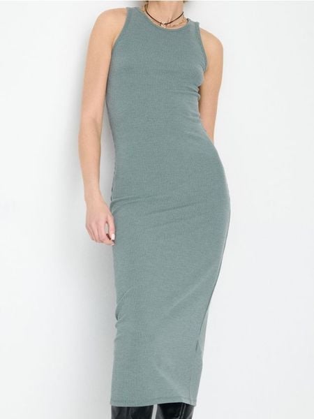 Sinsay – Dopasowana dzianinowa sukienka midi – zielony –