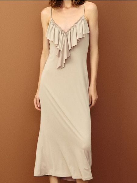 Sukienka midi na ramiączkach – kremowy