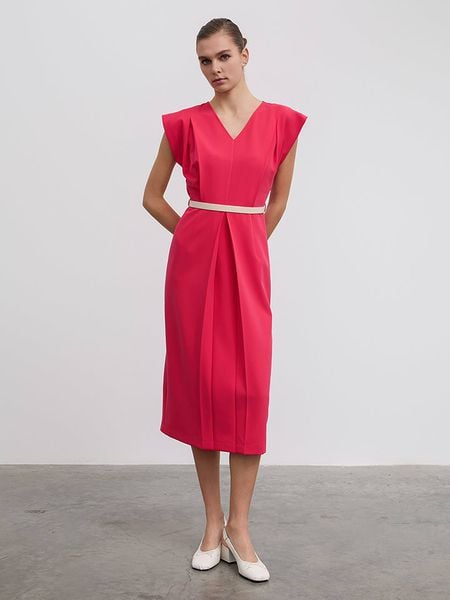 – ramiączka: szerokie- dekolt: V- zapięcie: suwak- szlufki na pasek: tak- przytwierdzony pasek: skóra syntetyczna- detale: ozdobna zakładka- krój: taliowany- look: jednokolorowyUwaga: Przy wyborze właściwego wariantu zaleca się korzystanie z tabeli rozmiarów.